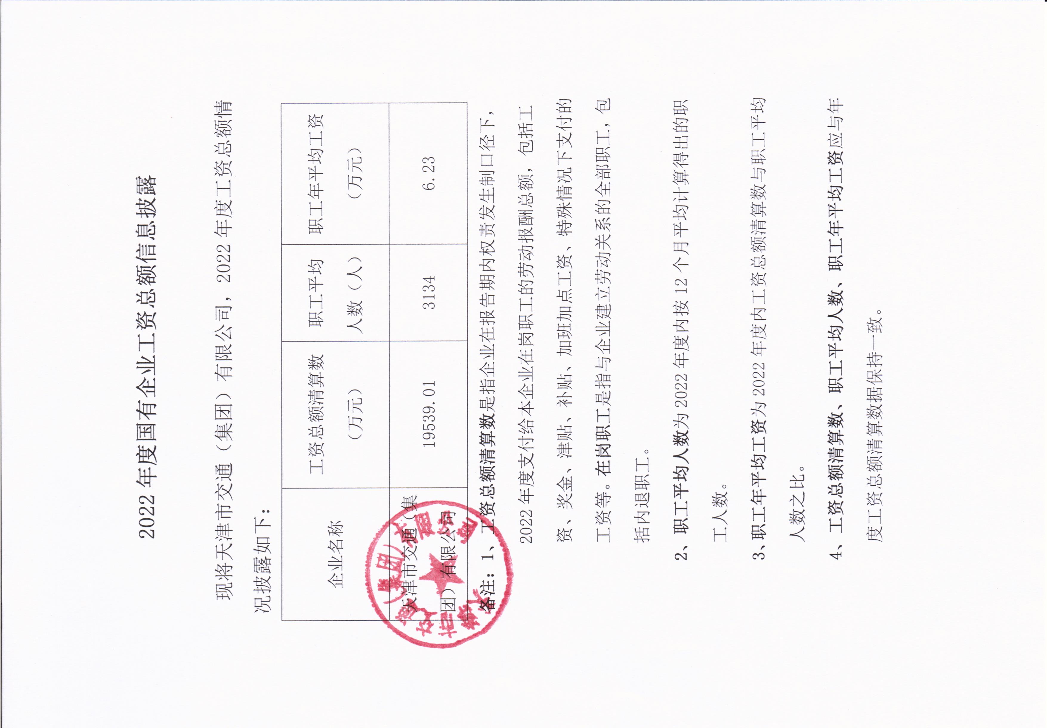 根据《天津市人民政府关于改革国有企业工资决定机制的实施意见》(津政发〔2019〕7号)有关规定,现将天津市交通(集团)有限公司2022年工资分配信息披露如下: