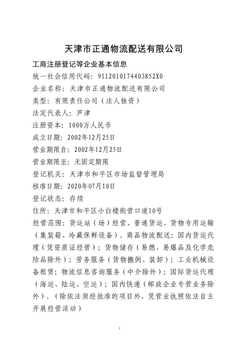 天津市正通物流配送有限公司